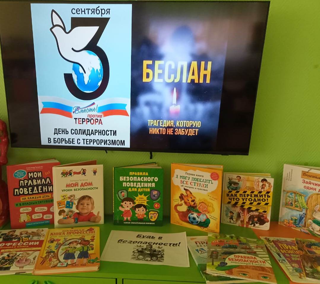 Ребятам было рассказано о том, как важно знать правила поведения при угрозах терактов, как вести себя в столь непростых ситуациях. Также дети посмотрели фрагмент фильма о правильном поведении при угрозе теракта, где напомнили, что надо быть бдительными, внимательными в общественных местах. Учащиеся с большим интересом прослушали обзор литературы «Всем миром против террора».