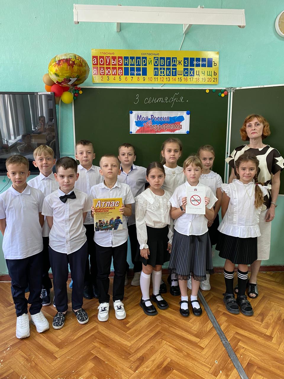 В рамках мероприятия ребята познакомились с печальной памятной датой сентября – Днем солидарности в борьбе с терроризмом, узнали краткую информацию о трагедии в городе Беслан, где 1 сентября 2004 года во время празднования Дня знаний в школе № 1 террористы напали и удерживали детей и их родителей 3 дня без воды и еды в душном спортзале.