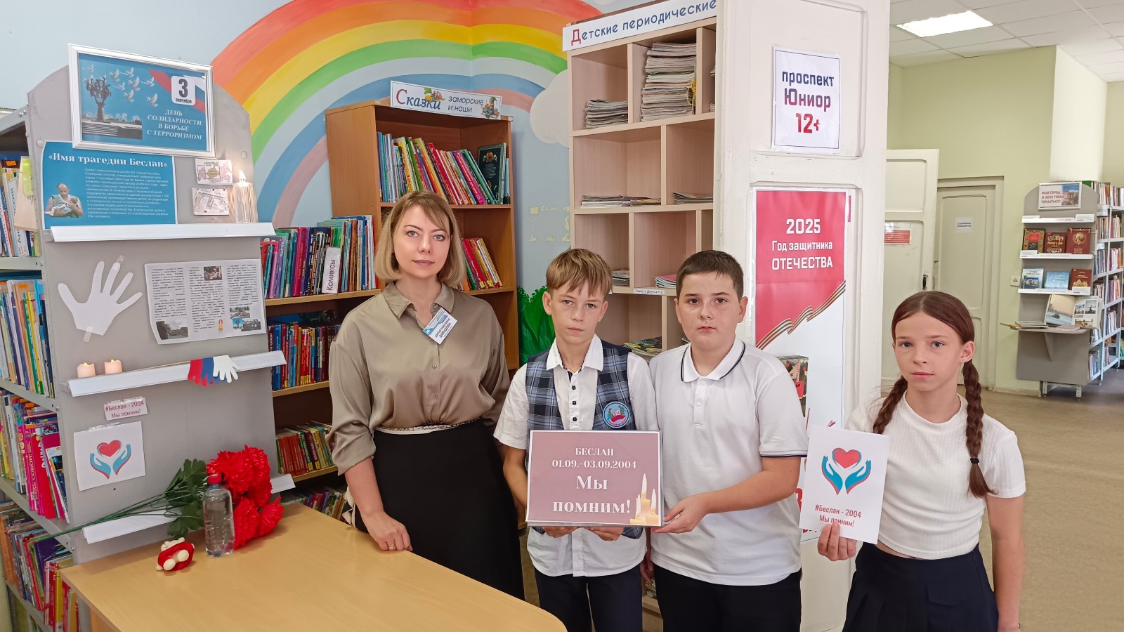 В Детской библиотеке имени К.И. Чуковского состоялся час мужества «Имя трагедии – Беслан», приуроченный ко Дню солидарности в борьбе с терроризмом. Мероприятие прошло для учащихся МБОУ №84.