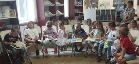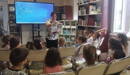 После небольшой физминутки дети посмотрели рисунки очень любимых Виктором Александровичем котов. В продолжение часа прошел показ книг из фонда библиотеки, иллюстрации в которых выполнены Виктором Чижиковым.