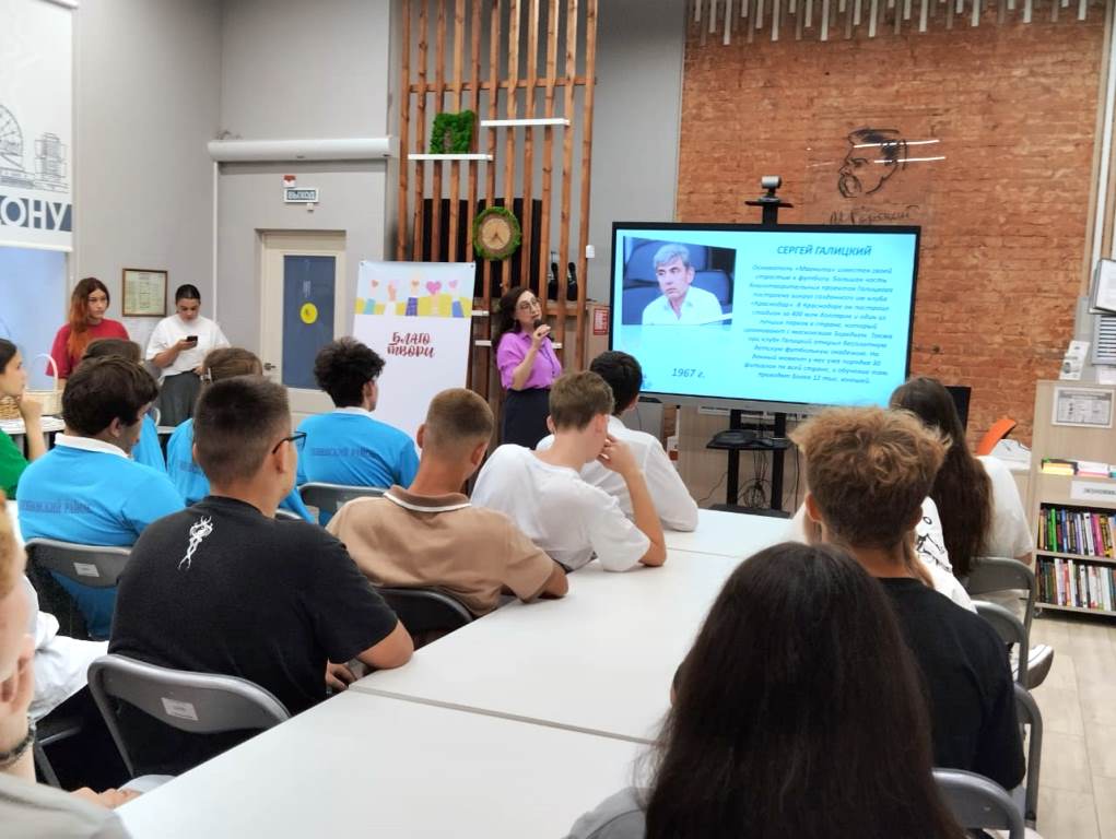 Специалисты читального зала ЦГБ имени М. Горького подготовили присутствующим занимательную презентацию о знаменитых благотворителях и меценатах России. Присутствующие узнали о Савве Ивановиче Мамонтове, Савве Тимофеевиче Морозове, Козьме Терентьевиче Солдатёнкове, Дмитрии Михайловиче Голицыне, братьях Третьяковых и о других покровителях и просветителях культурного наследия нашей страны. Было отмечено, что благотворительность и меценатство в России продолжается и в наше время. Участники мероприятия узнали о таких благотворителях современности, как Сергей Галицкий, Денис Свердлов, Алишер Усманов, Андрей Мельниченко и другие.
