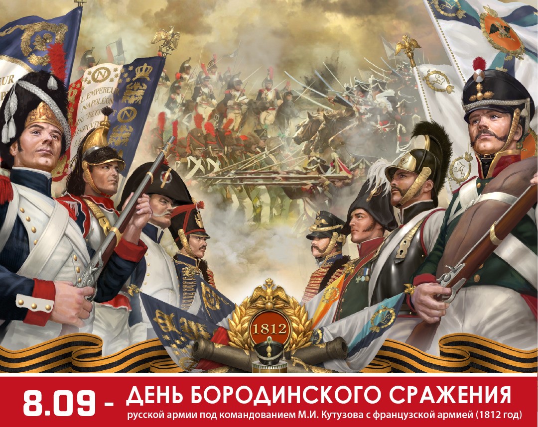 Битва около села Бородино между русской армией под командованием полководца Михаила Кутузова и французской армией под командованием императора Наполеона Бонапарта состоялась 7 сентября (26 августа - по старому стилю) 1812 года в ходе Отечественной войны.