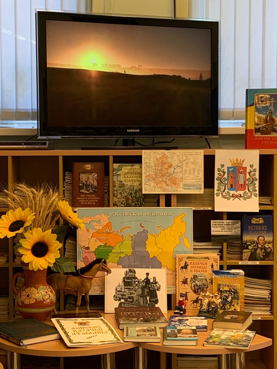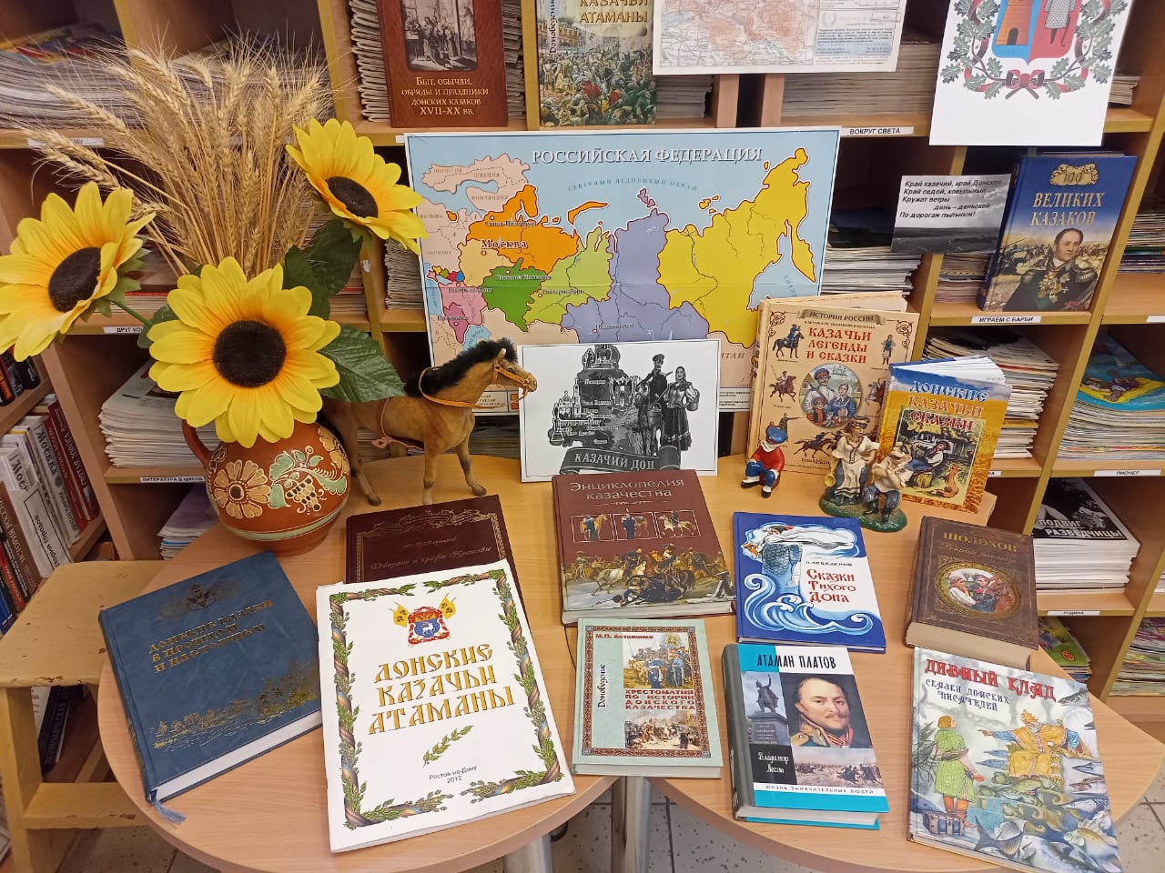 В заключение мероприятия юные читатели ознакомились с книжной выставкой «Казачий Дон», на которой были представлены книги о прошлом и настоящем нашего города, о казачестве, а также произведения донского фольклора.