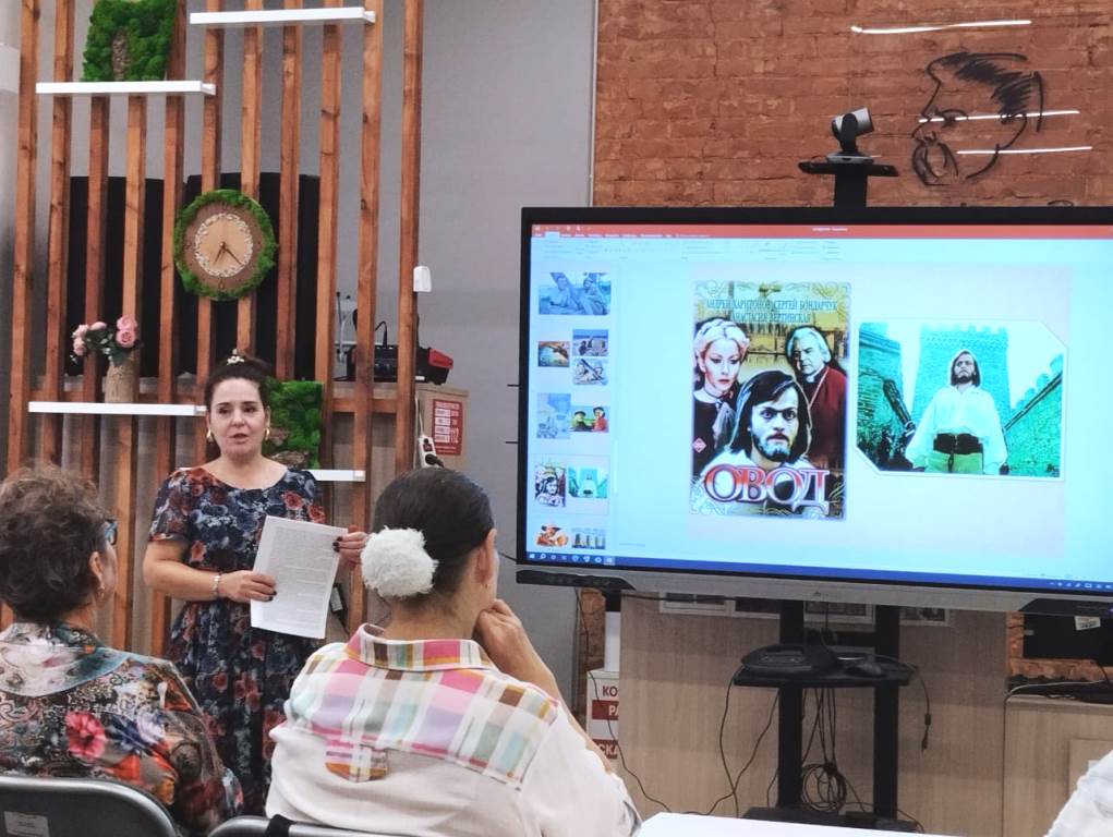 С помощью презентации участники мероприятия познакомились с творчеством нашего прославленного кинорежиссера Сергея Федоровича Бондарчука.