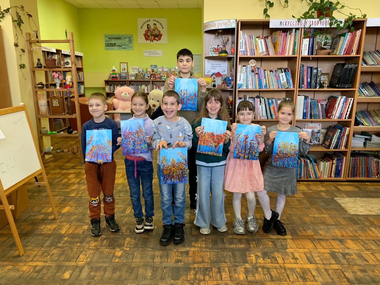 В детской библиотеке имени Зои Космодемьянской прошло очередное занятие в клубе «Кисточка и карандаш» на тему «Осенний лес».