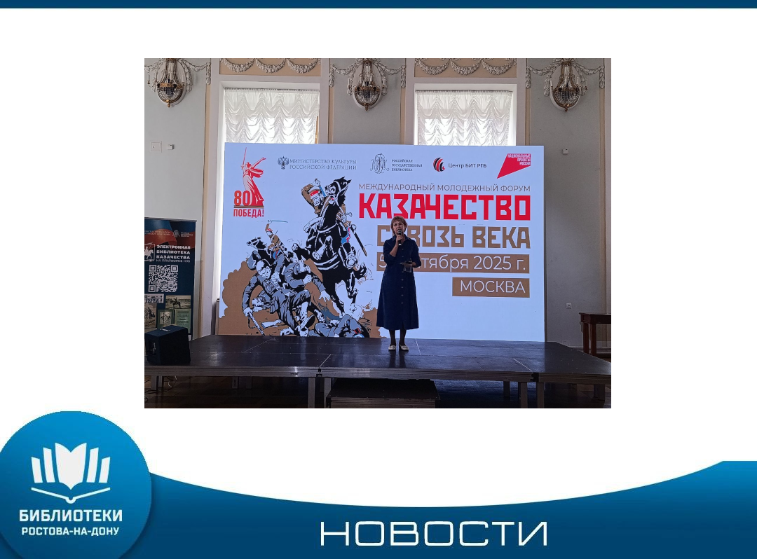 В рамках Международного молодежного форума «Казачество - сквозь века» состоялось торжественное награждение победителей и лауреатов Международного конкурса «Лучшие практики библиотек по сохранению, исторической памяти о героях Великой Отечественной войны», посвящённого 80-летию Победы в Великой Отечественной войне. Дипломом победителя (лауреата первой степени) в номинации «Лица Победы» награжден филиал № 14 Библиотека имени А. В. Калинина МБУК Ростовская-на-Дону городская ЦБС. На конкурс был представлен ...