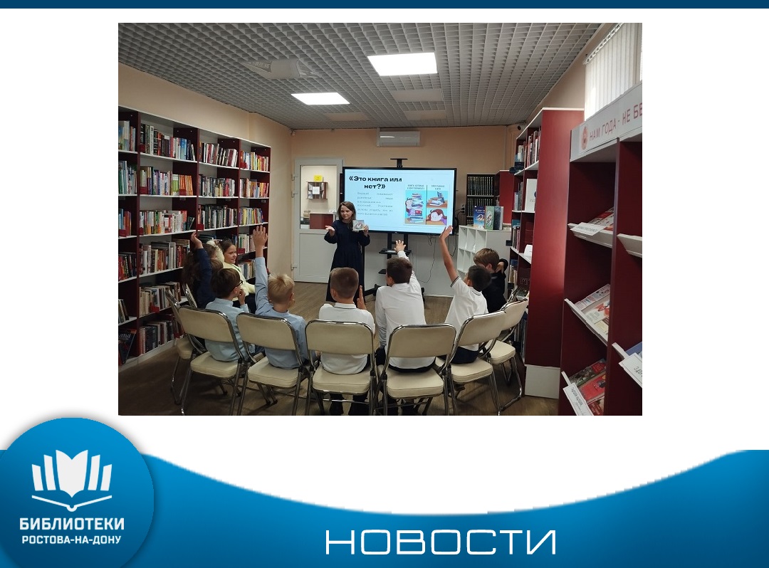 В библиотеке имени Н. К. Крупской прошёл Литературный час «Читайте больше нас!» ко Всероссийскому Дню чтения. На мероприятии присутствовали ученики 3 класса ФГБОУ ВО гимназии ДГТУ. Сначала ребята познакомились со всеми отделами библиотеки и обсудили правила её посещения. Особенное внимание библиотекарь уделила возможностям современной библиотеки - сегодня это не только место для чтения, но и творческая площадка для раскрытия своих талантов! Далее дети вместе с библиотекарем обсудили, что такое чтение ...