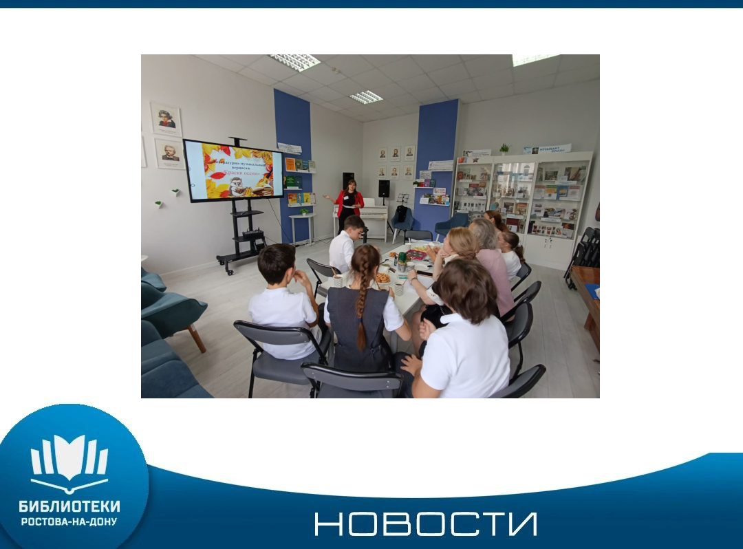 В музыкальном салоне «АнтреСоль» в музыкально-нотном отделе Центральной городской библиотеки имени М. Горького прошло заседание литературно-музыкального клуба «ТВЭЛ», посвящённое красочному времени года осени. Осень — это последняя, самая восхитительная улыбка года. Осень вдохновляла художников, композиторов, поэтов создавать прекрасные произведения, рассказывая об осени краской, музыкой, словами. посвящённое этому красочному времени года. В литературно-музыкальном вернисаже «Краски осени» приняли ...