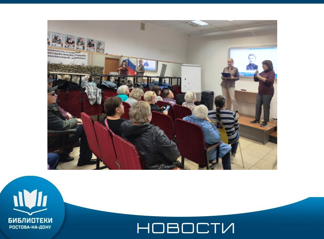 Поэтический час «России стихотворная душа» о жизни и творчестве С. А. Есенина (1895–1925), провели специалисты читального зала Центральной городской библиотеки имени М. Горького для подопечных РРО ВОГ в рамках программы «Библиоопека». Из презентации участники мероприятия узнали, что за свою очень короткую жизнь Сергей Есенин создал более 400 трогательных и проникновенных произведений – стихов и поэм. Его стихи о родном крае, о любви, о России известны каждому со школьной скамьи, многие из них положены ...