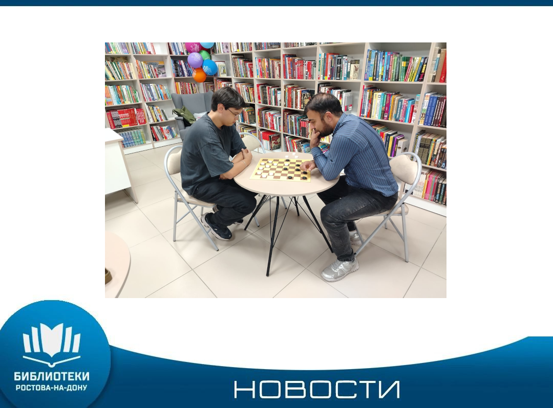Второй год в Библиотечно-информационном центре имени академика Д. С. Лихачева работает шашечный клуб «COGITO», в котором занятия проводит мастер спорта России, чемпион Ростовской области по русским шашкам Егор Григорьевич Глушко-Поручевский. В клубе проходят как групповые бесплатные занятия по шашкам каждую субботу, так и индивидуальное обучение шашкам и шахматам для всех желающих на возмездной основе. Занятия проводятся по договоренности с тренером со вторника по субботу, с 11 до 19 часов. Справки ...