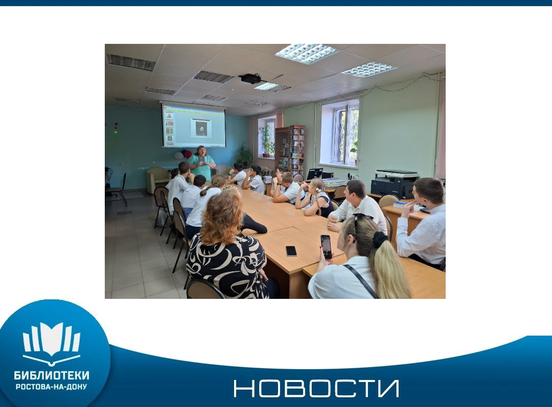 Специалисты Библиотечно-информационного центра имени Н. Г. Чернышевского продолжают проводить мероприятия, посвящённые 80-летию Великой Победы. В библиотеке состоялась встреча с воспитанниками ГКОУ РO Ростовская школа-интернат № 41. В рамках Литературно-патриотической гостиной «Кому бесславие, а кому бессмертие» внимание ребят было привлечено к повести Василя Быкова «Сотников». Специалист библиотеки рассказала, что в этом году исполнилось 55 лет со дня написания Василем Владимировичем Быковым этого ...