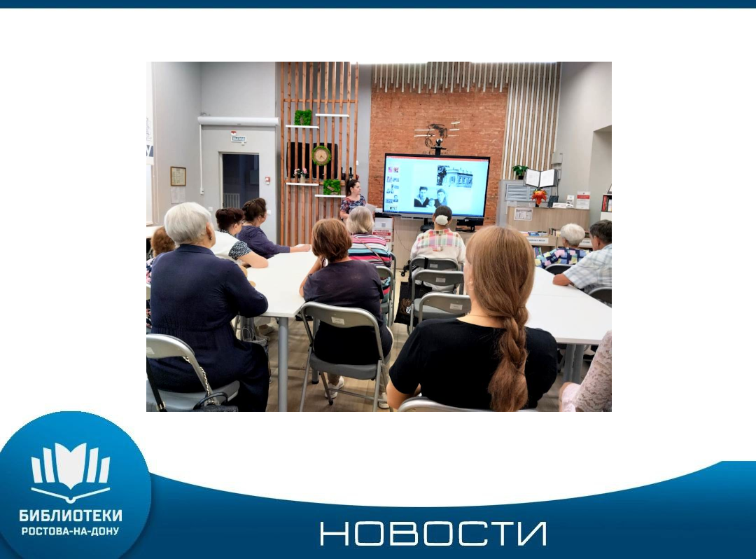 Киногостиная «Судьба и фильмы» была посвящена 105-летию со дня рождения С. Ф. Бондарчука (1920-1994), советского и российского актёра, кинорежиссёра, сценариста, педагога. Народный артист СССР (1952). Мероприятие прошло на заседании клуба «От сердца к сердцу», которое провели специалисты читального зала Центральной городской библиотеки имени М. Горького. С помощью презентации участники мероприятия познакомились с творчеством нашего прославленного кинорежиссера Сергея Федоровича Бондарчука. Присутствующие ...